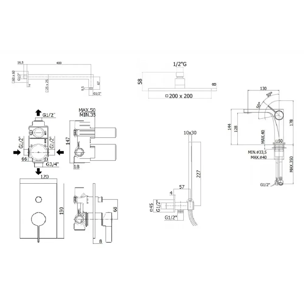 Состав душевого комплекта: