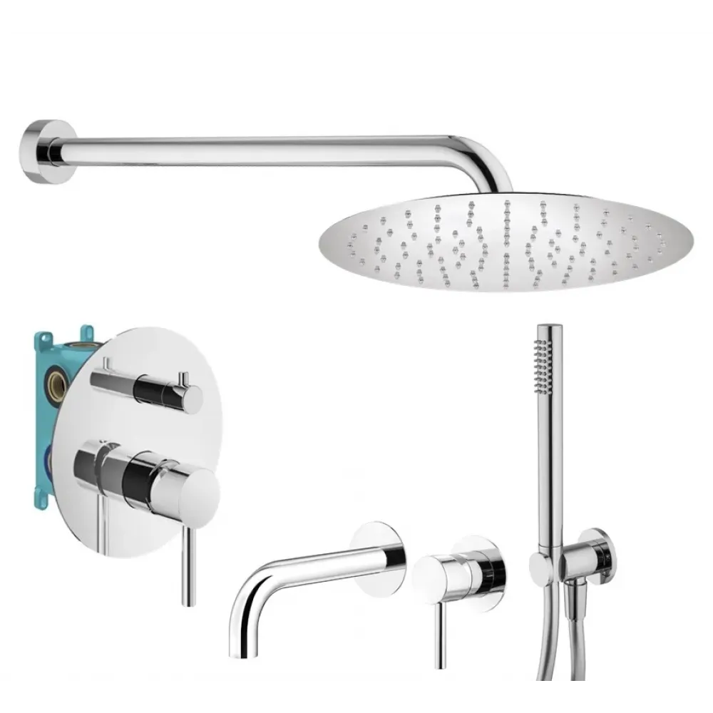 - KITXO1135CR210 Комплект встраиваемого смесителя для раковины, излив 210мм, накладка диам. 70мм, внутренняя часть INT1135 в комплекте, хром IXO, Plumberia Sel KIT1901CR Комплект встраиваемого смесителя для душа с внутренней частью INT9036 на 2-3 выхода, накладка d. 170mm нержавеющая сталь, механический девиатор, хром IXO, Plumberia Selection