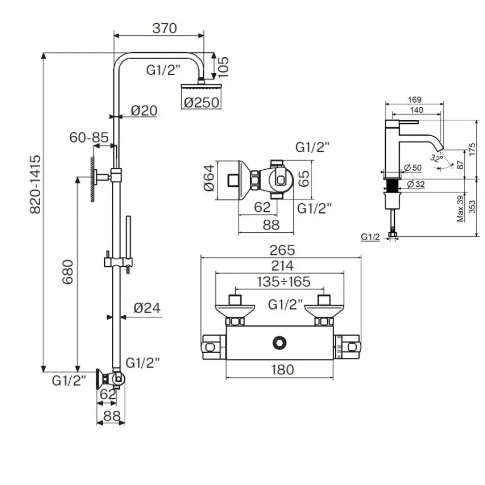 - XO6302CR Душевая колонна телескопическая терм., поворотная, Верхний душ из нержавеющей стали 250мм, ручной душ 1 режим, шланг 150мм, хром IXO, Plumberia Selection.