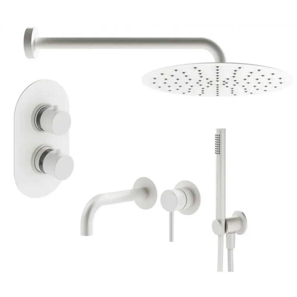 Комплект KITXOT18BO210 со встраиваемым cмесителем для раковины KITXO1135BO210, смесителем для душа XOT5040BO термостатическим на 2 выхода, душ 250мм, IXO белый матовый Plumberia Selection