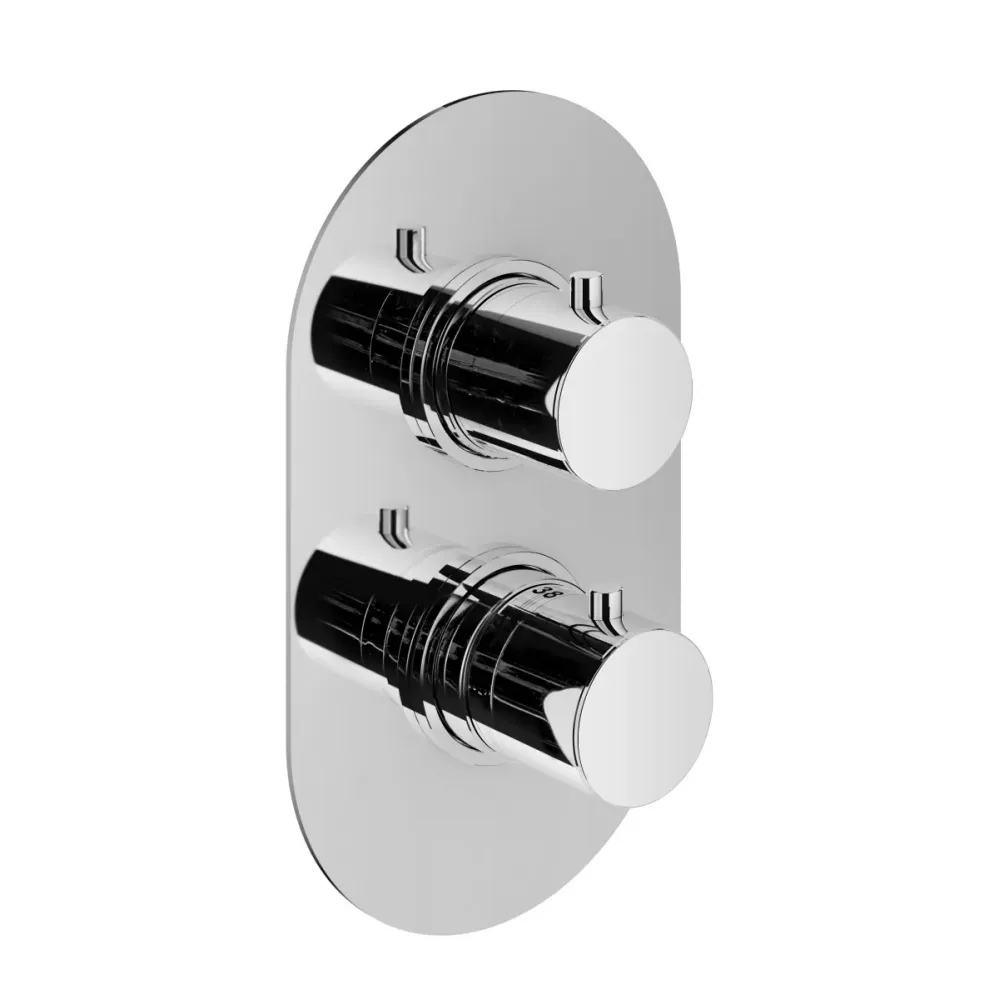- XOT5040CR Смеситель термостат встраиваемый для душа 2 выход в комлекте со встраиваемой частью, накладка овальная из нержавеющей стали, хром, Plumberia Selection