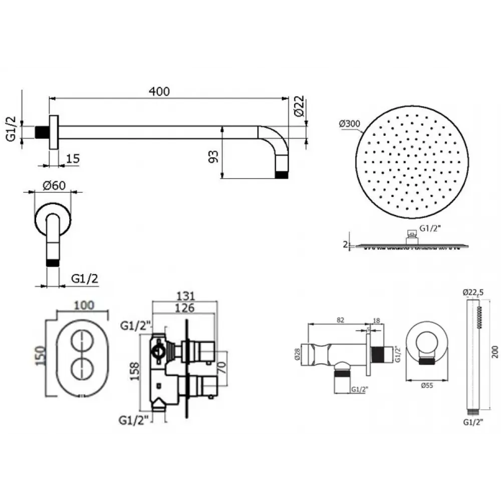 Комплект KITXOT18CR для душа термостатический, со смесителем XOT5040CR на 2 выхода, душ 300мм, IXO, хром Plumberia Selection