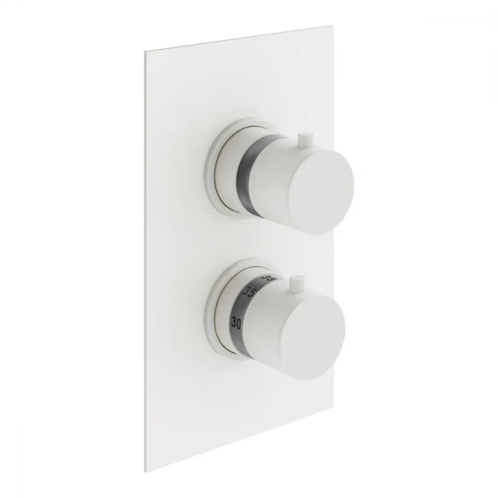 - XOT5020BO Смеситель термостат встраиваемый для душа 2 выход в комлекте со встраиваемой частью, накл. из нержавеющей стали, белый матовый, Plumberia Selection