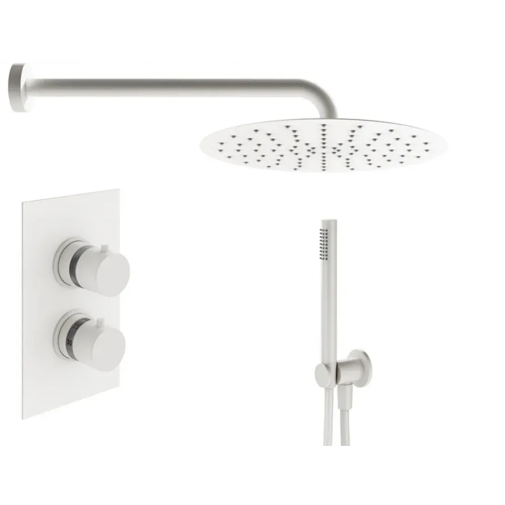 Комплект KITXOT18QBO для душа термостатический, со смесителем XOT5020BO на 2 выхода, душ 250мм, IXO, белый матовый Plumberia Selection