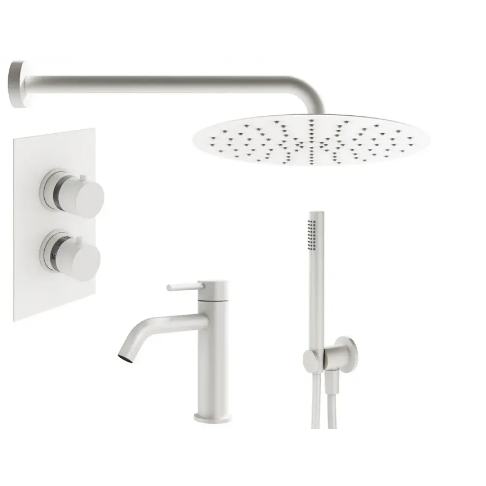 Комплект KITXOT18QBO53 со смесителем для раковины XO0053BO, смесителем для душа XOT5020BO термостатическим на 2 выхода, душ 250мм, IXO, белый матовый Plumberia Selection