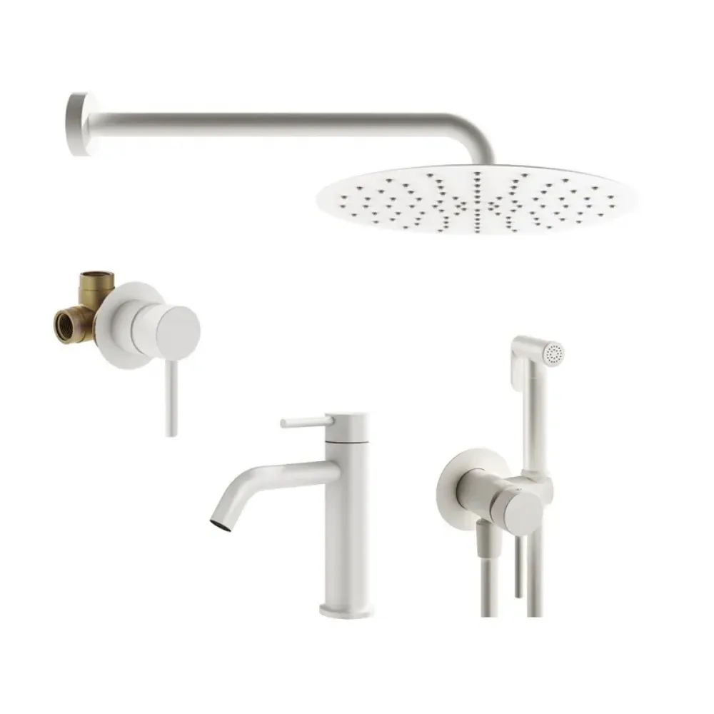 Комплект KITZXO01BO53 с гигиеническим душем, смесителем для раковины XO0053BO, смесителем для душа KITXO1135BO на 1 выход, душ 250мм, IXO, белый матовый Plumberia Selection