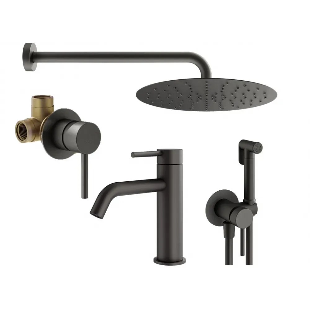 Комплект KITZXO01GR53 с гигиеническим душем, смесителем для раковины XO0053GR, смесителем для душа KITXO1135GR на 1 выход, душ 250мм, IXO, графит Plumberia Selection