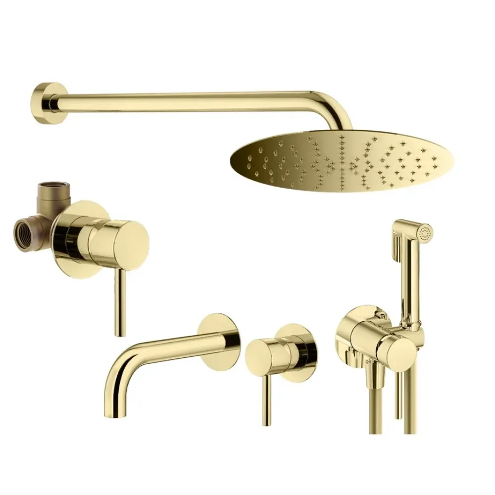 Комплект KITZXO01OR210 с гигиеническим душем, смесителем для раковины KITXO1135OR210, смесителем для душа KITXO1135OR на 1 выход, душ 250мм, IXO, золото Plumberia Selection