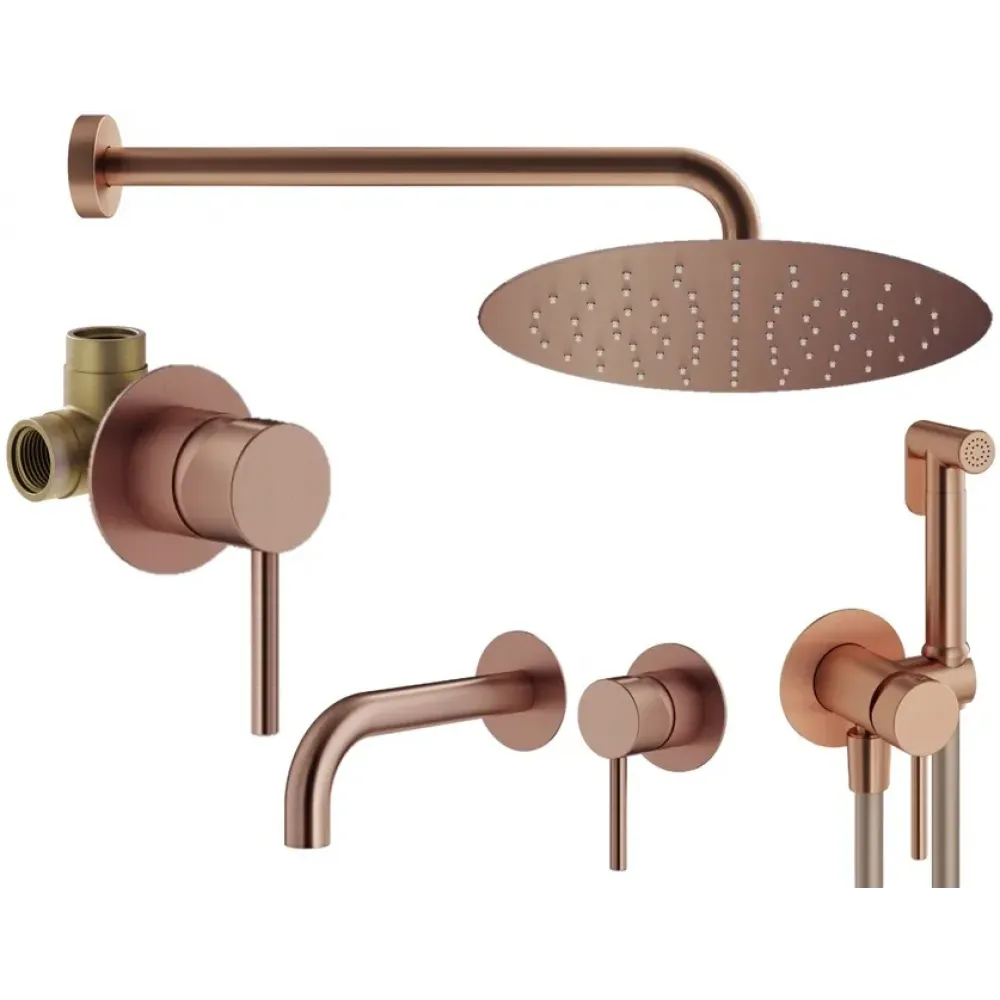 Комплект KITZXO01RS210 с гигиеническим душем, смесителем для раковины KITXO1135RS210, смесителем для душа KITXO1135RS на 1 выход, душ 250мм, IXO, брашированная медь Plumberia Selection