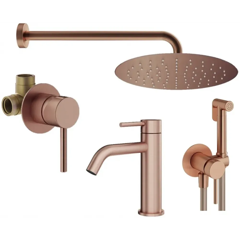 Комплект KITZXO01RS53 с гигиеническим душем, смесителем для раковины XO0053RS, смесителем для душа KITXO1135RS на 1 выход, душ 250мм, IXO, брашированная медь Plumberia Selection