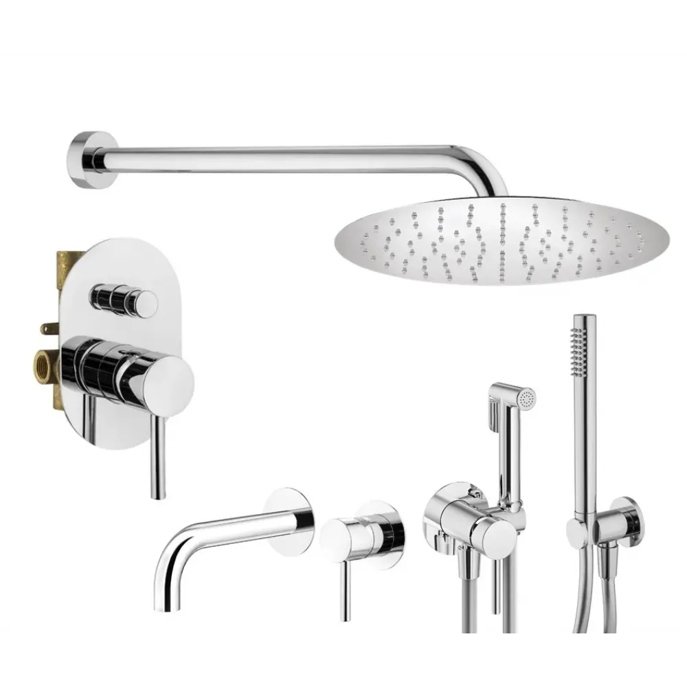 Комплект KITZXO15CR210 с гигиеническим душем, со встраиваемым смесителем для раковины KITXO1135CR210, смес. для душа KIT1001CR на 2 выхода, душ 250мм, IXO, хром Plumberia Selection