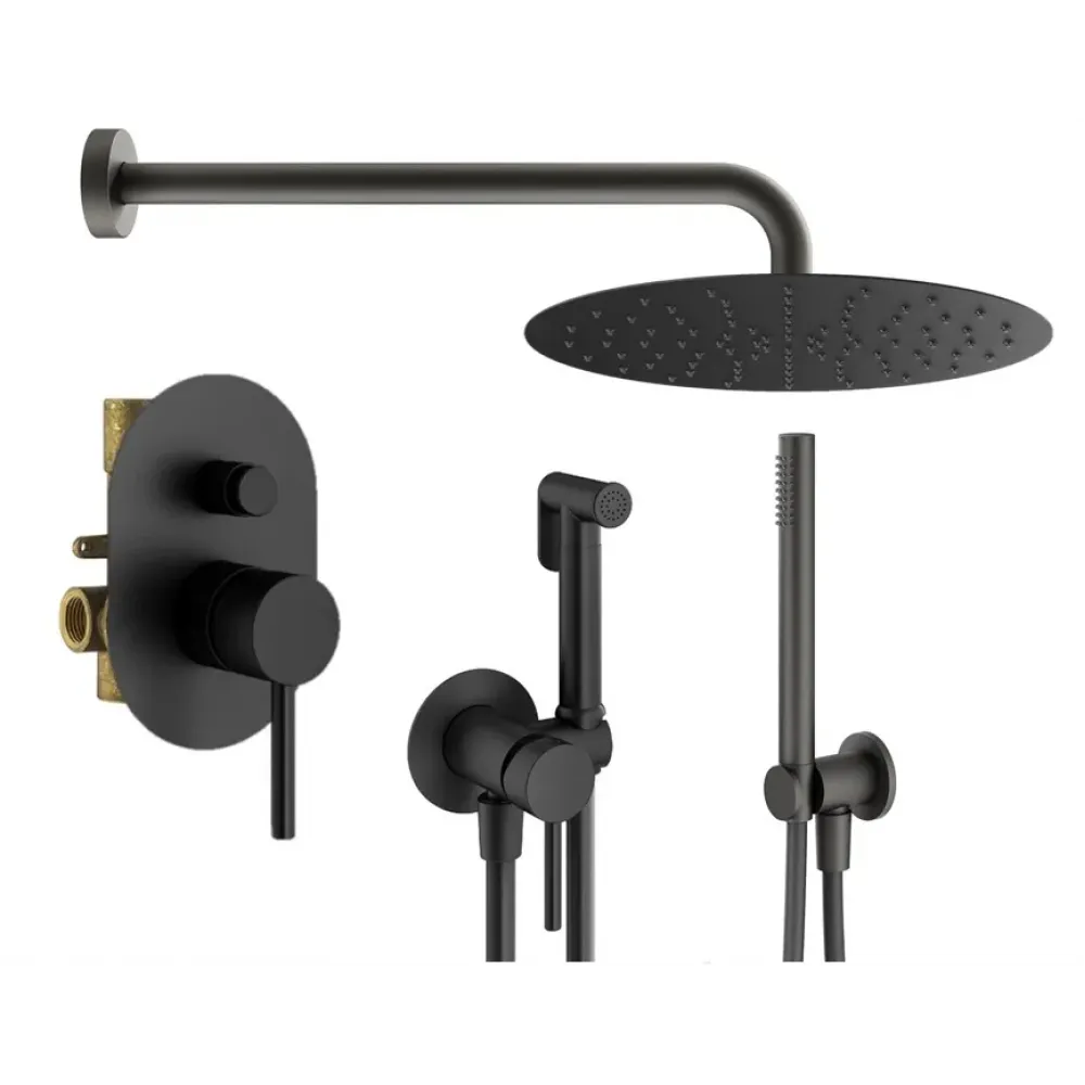 Комплект KITZXO15NO для душа с гигиеническим душем, со смесителем KIT1001NO на 2 выхода, душ 250мм, IXO, черный матовый Plumberia Selection