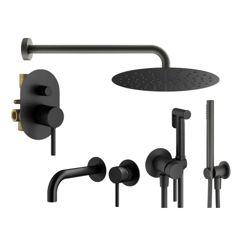 Комплект KITZXO15NO210 с гигиеническим душем, смесителем для раковины KITXO1135NO210 смесителем для душа KIT1001NO на 1 выход, душ 250мм, IXO, черный матовый Plumberia Selection