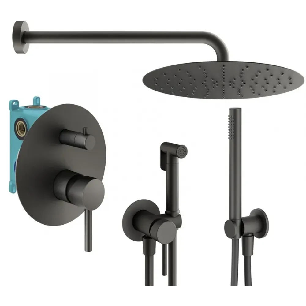 Комплект KITZXO18GR с гигиеническим душем, со смесителем KIT1901GR на 2 выхода, душ 250мм, IXO, графит Plumberia Selection