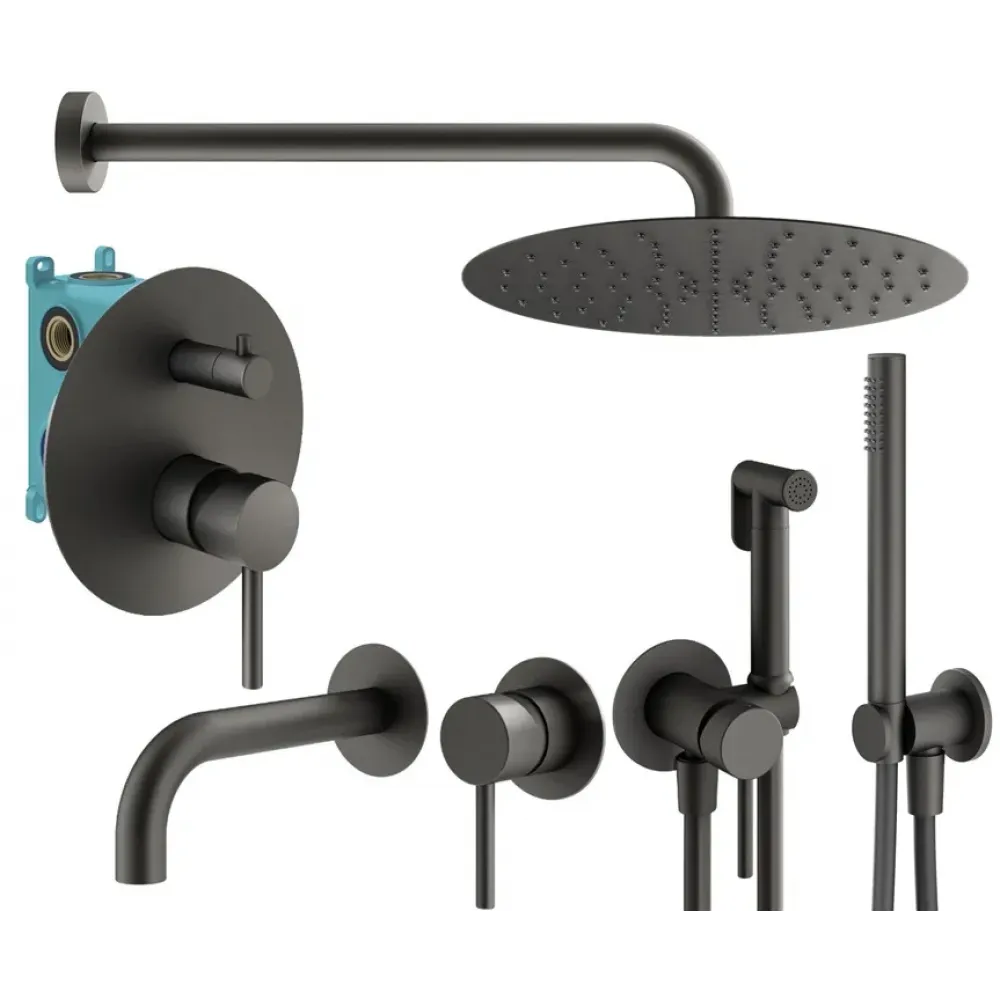 Комплект KITZXO18GR210 с гигиеническим душем, со встраиваемым смесителем для раковины KITXO1135GR210, смесителем для душа KIT1901GR на 2 выхода, душ 250мм, IXO, графит Plumberia Selection