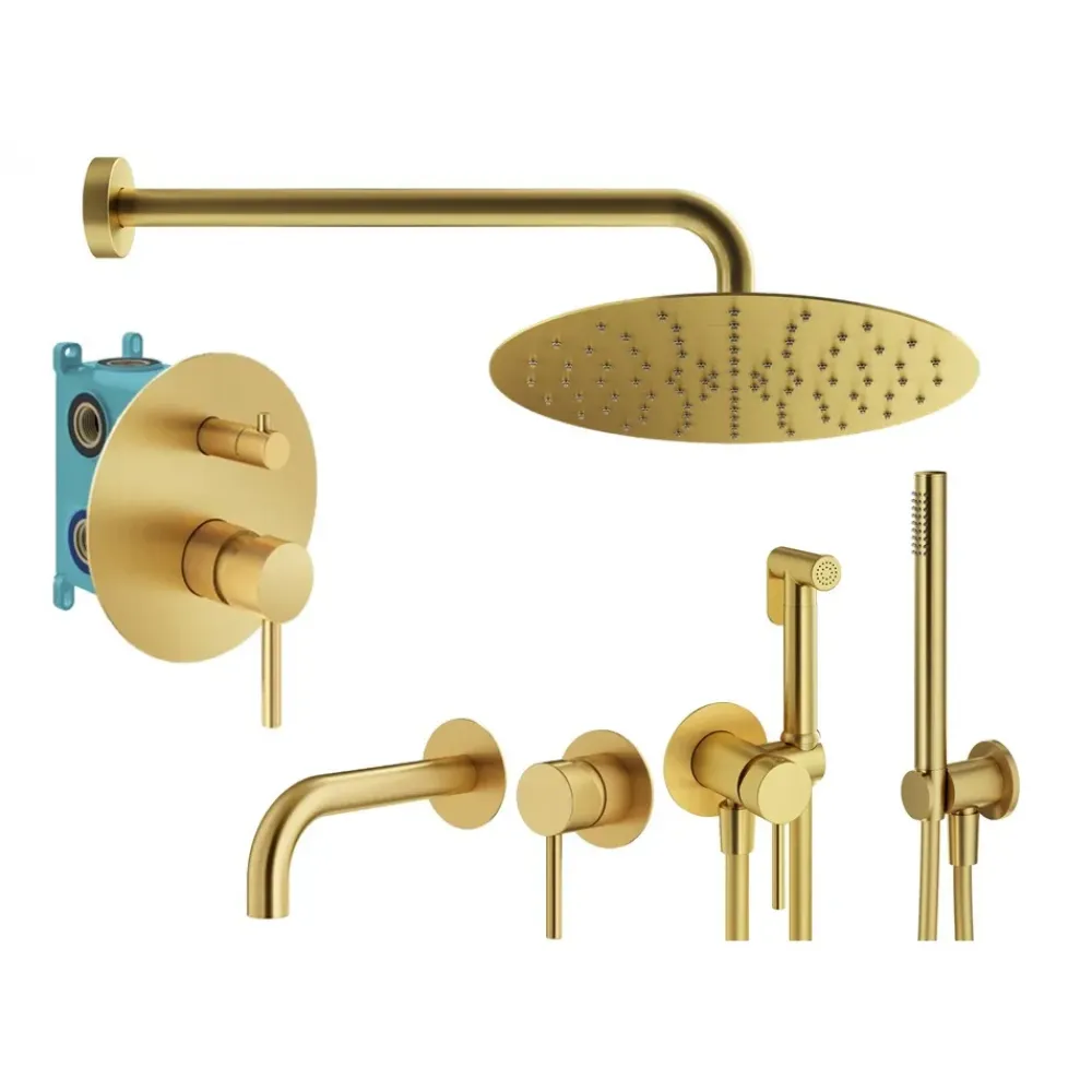 Комплект KITZXO18OB210 с гигиеническим душем, со встраиваемым смесителем для раковины KITXO1135OB210, смесителем для душа KIT1901OB на 2 выхода, душ 250мм, IXO, брашированное золото Plumberia Selection