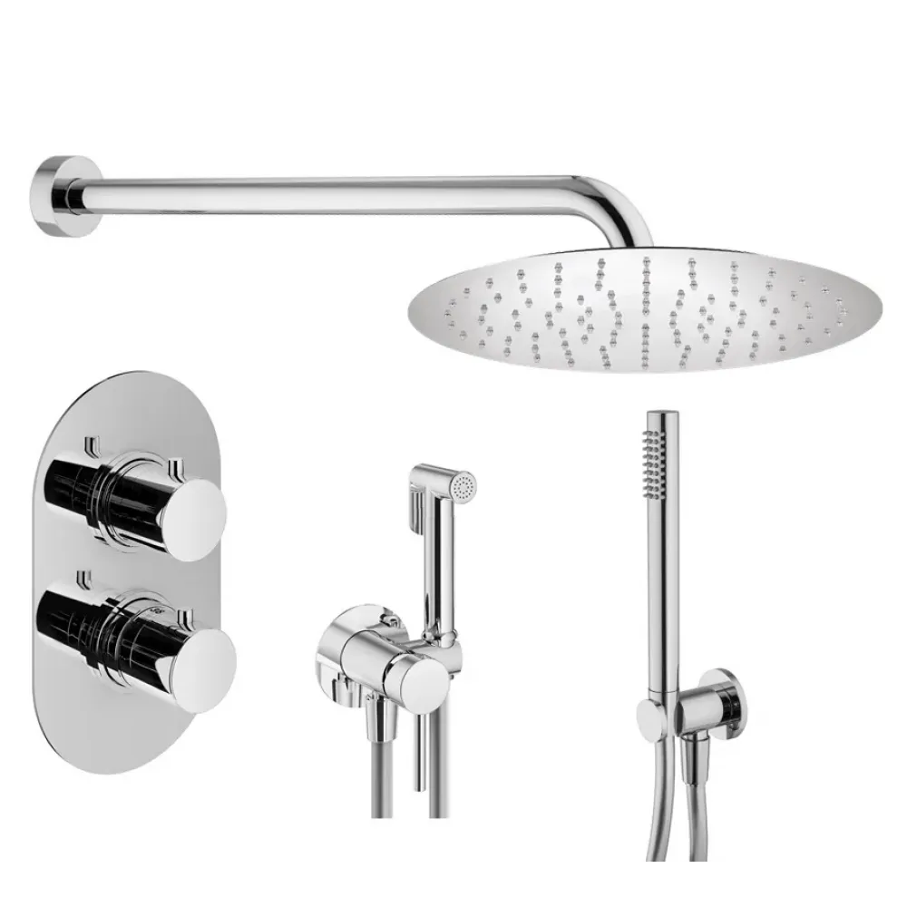 Комплект KITZXOT18CR с гигиеническим душем, для душа термостатический, со смесителем XOT5040CR на 2 выхода, душ 250мм, IXO, хром Plumberia Selection