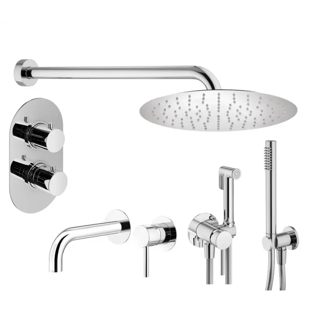 Комплект KITZXOT18CR210 с гигиеническим душем, со встраиваемым смесителем для раковины KITXO1135CR210, смесителем для душа XOT5040CR термостатический на 2 выхода, душ 250мм, IXO, хром Plumberia Selection