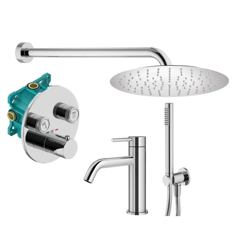 Комплект KITPSB02CR53 для душа термостатический, со смесителем для раковины XO0053CR, смесителем для душа KITPSB1902CR на 2 выхода, душ 250мм, PS BOX, хром Plumberia Selection