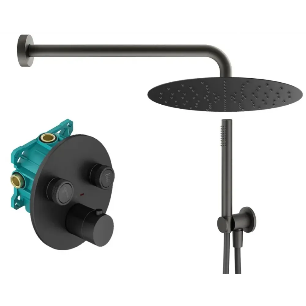 Комплект KITPSB02NOKING для душа термостатический, со смесителем KITPSB1902NO на 2 выхода, душ 300мм, PS BOX, черный матовый Plumberia Selection