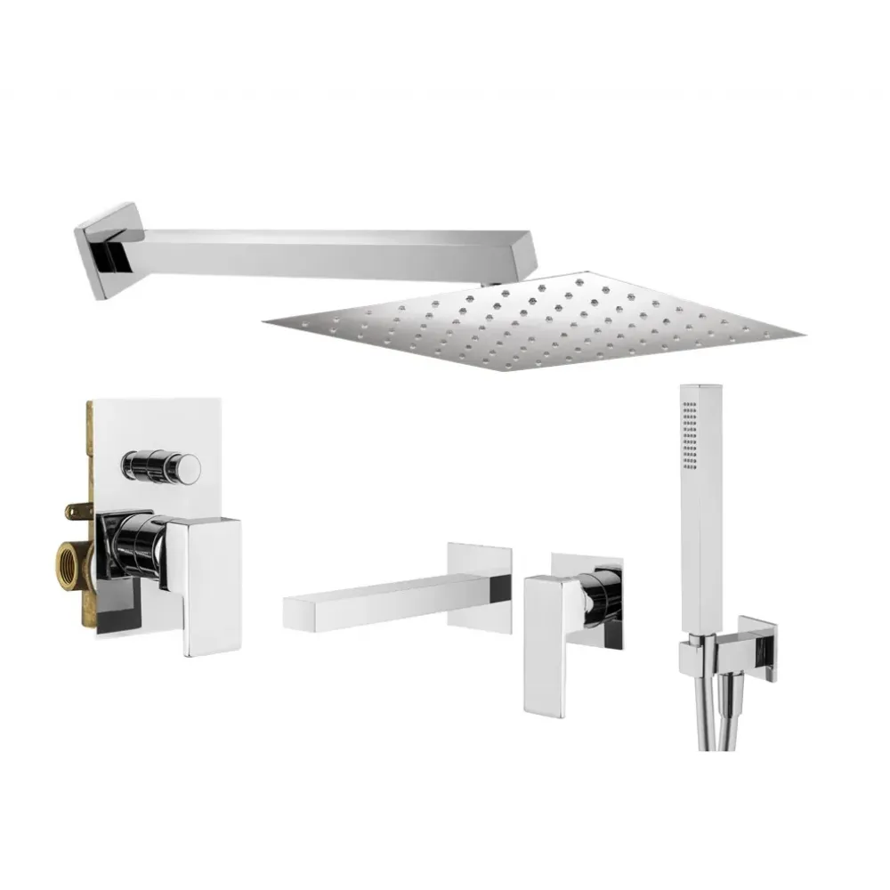 Комплект KITTG15CR220 для душа, со встраиваемым смесителем для раковины KITTG1135CR220, со смесителем KITTG1001CR на 2 выхода, душ 250x250мм, TAG, хром Plumberia Selection