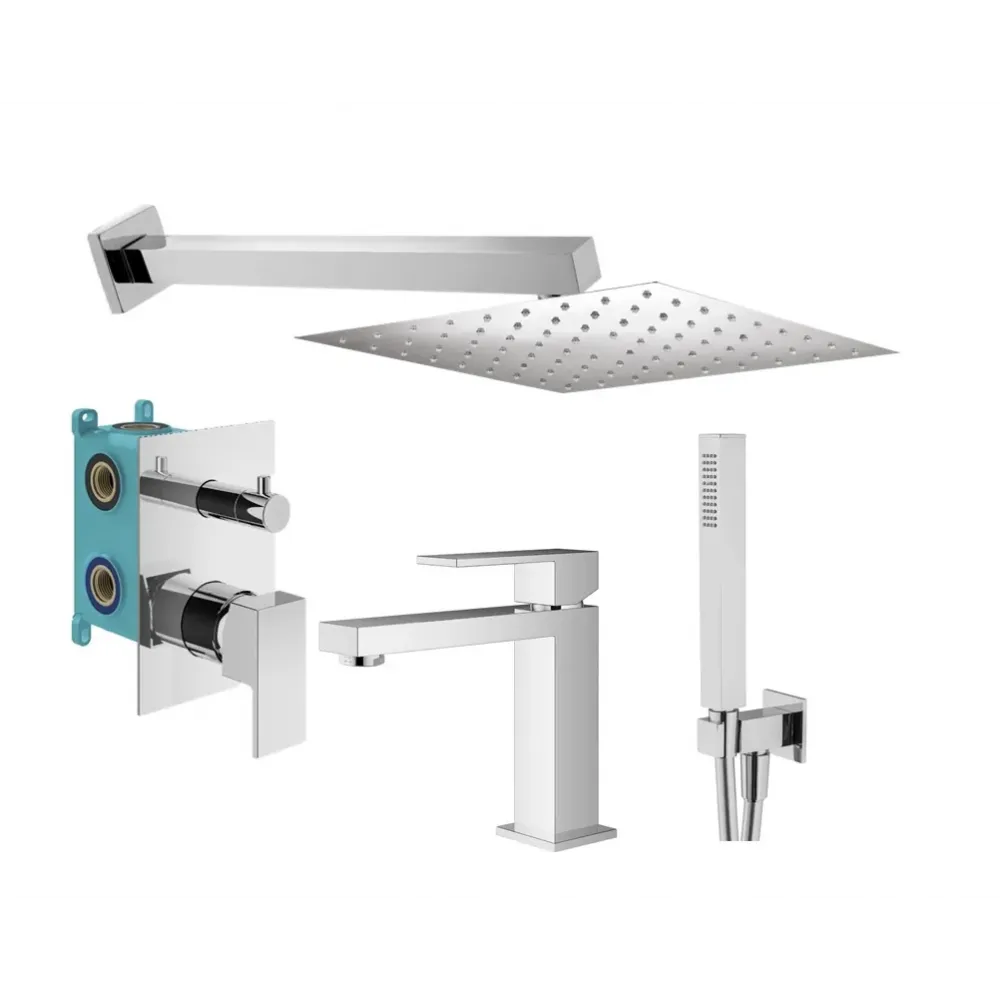 Комплект KITTG18CR53 со смесителем для раковины TG0053CR, смесителем для душа KITTG1901CR на 2 выхода, душ 250x250мм, TAG, хром Plumberia Selection
