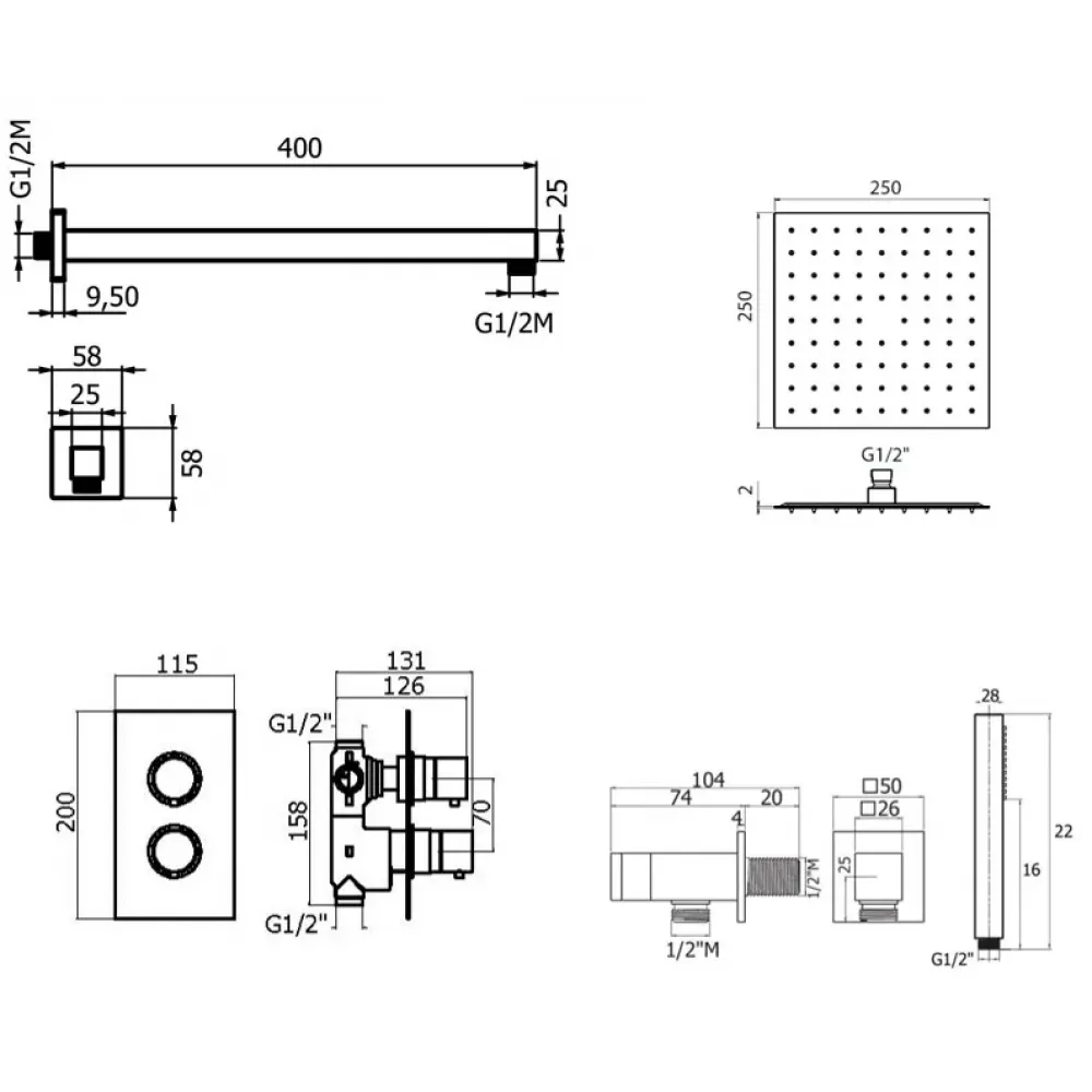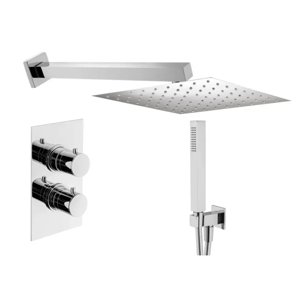Комплект KITTGT18QCR для душа термостатический, со смесителем XOT5020CR на 2 выхода, душ 250x250мм, TAG, хром Plumberia Selection