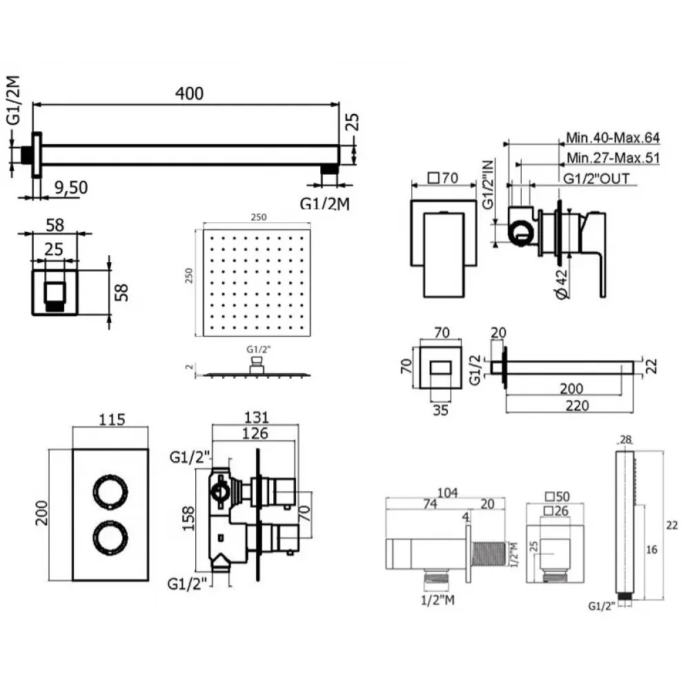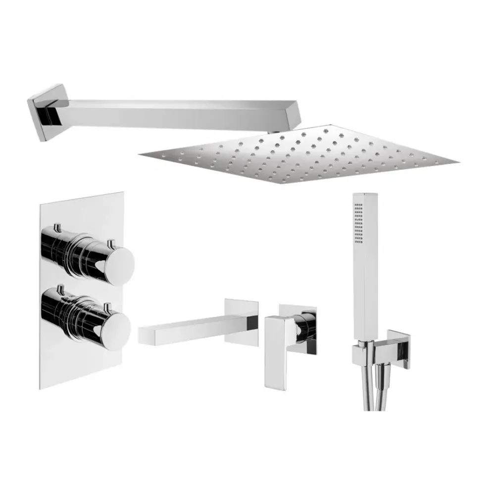 Комплект KITTGT18QCR220 со встраиваемым cмесителем для раковины KITTG1135CR220, смесителем для душа XOT5020CR термостатическим на 2 выхода, душ 250x250мм, TAG, хром Plumberia Selection