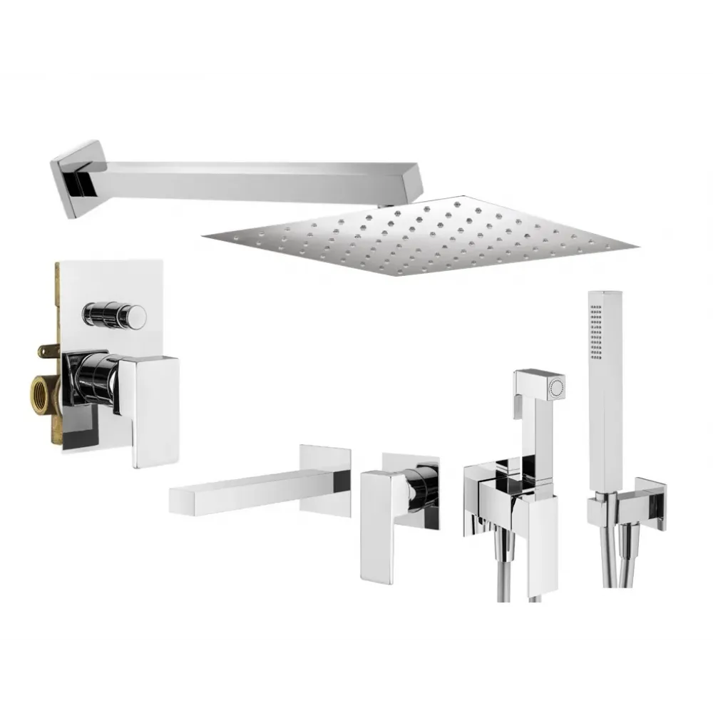 Комплект KITZTG15CR220 с гигиеническим душем, для душа, со встраиваемым смесителем для раковины KITTG1135CR220, со смесителем KITTG1001CR на 2 выхода, душ 250x250мм, TAG, хром Plumberia Selection