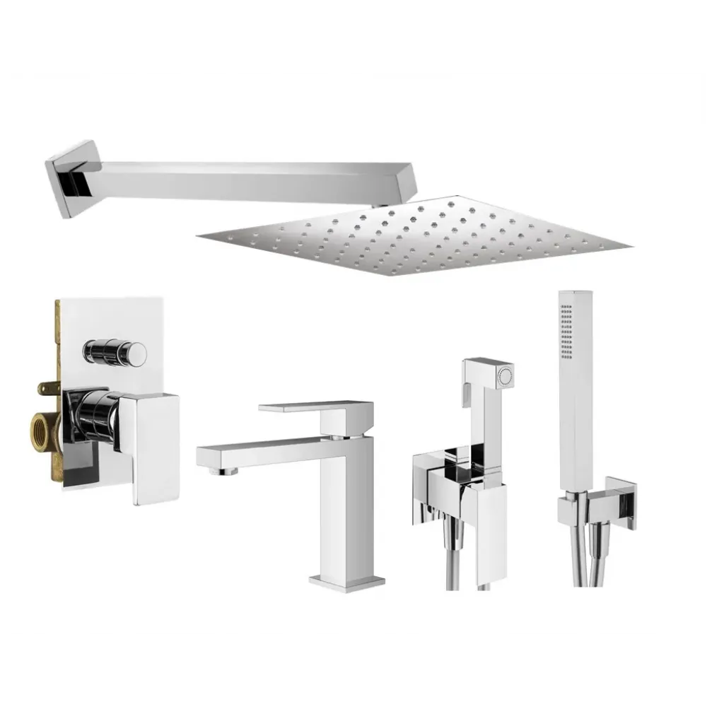 Комплект KITZTG15CR53 с гигиеническим душем, для душа, со смесителем для раковины TG0053CR, со смесителем KITTG1001CR на 2 выхода, душ 250x250мм, TAG, хром Plumberia Selection