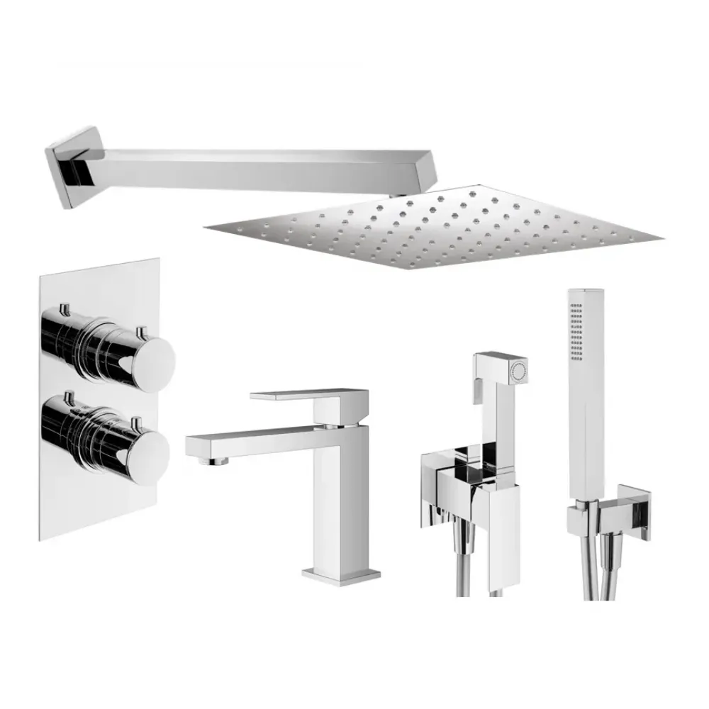 Комплект KITZTGT18QCR53 с гигиеническим душем, со смесителем для раковины TG0053CR, смесителем для душа XOT5020CR термостатический на 2 выхода, душ 250x250мм, TAG, хром Plumberia Selection