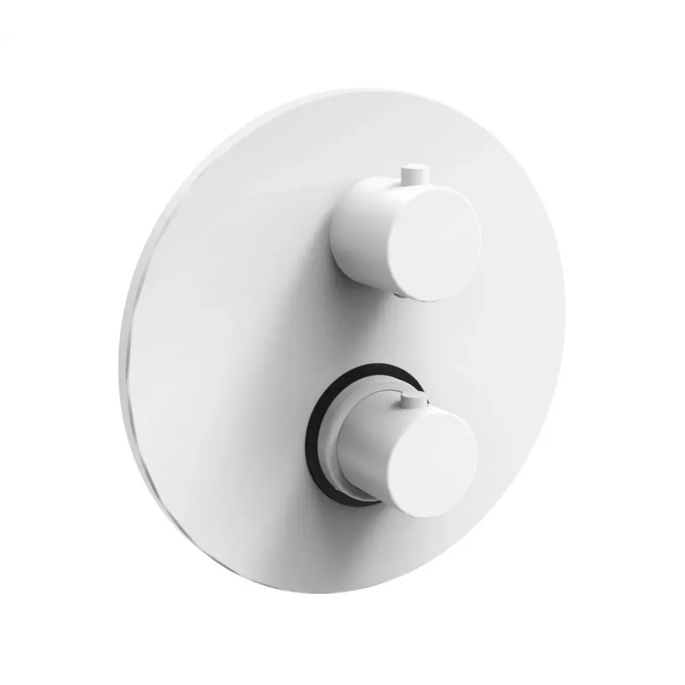 • LIQ019BO Смеситель термостат встраиваемый для душа 3 выход с накл.металл диам.200мм, девиатор-картридж, 3 положения+3 комбо со стоп, белый матовый, Pa