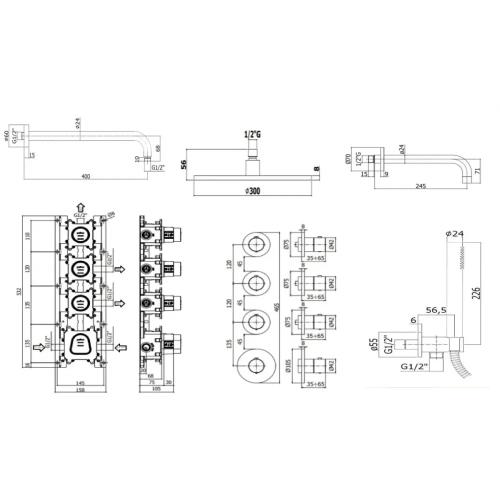 •MDE019HGSP Внешняя часть смесителя ТЕРМОСТАТ, для использования только с арт.MDBOX019, на 3 выхода, расположение горизонтальное или вертикальное. В