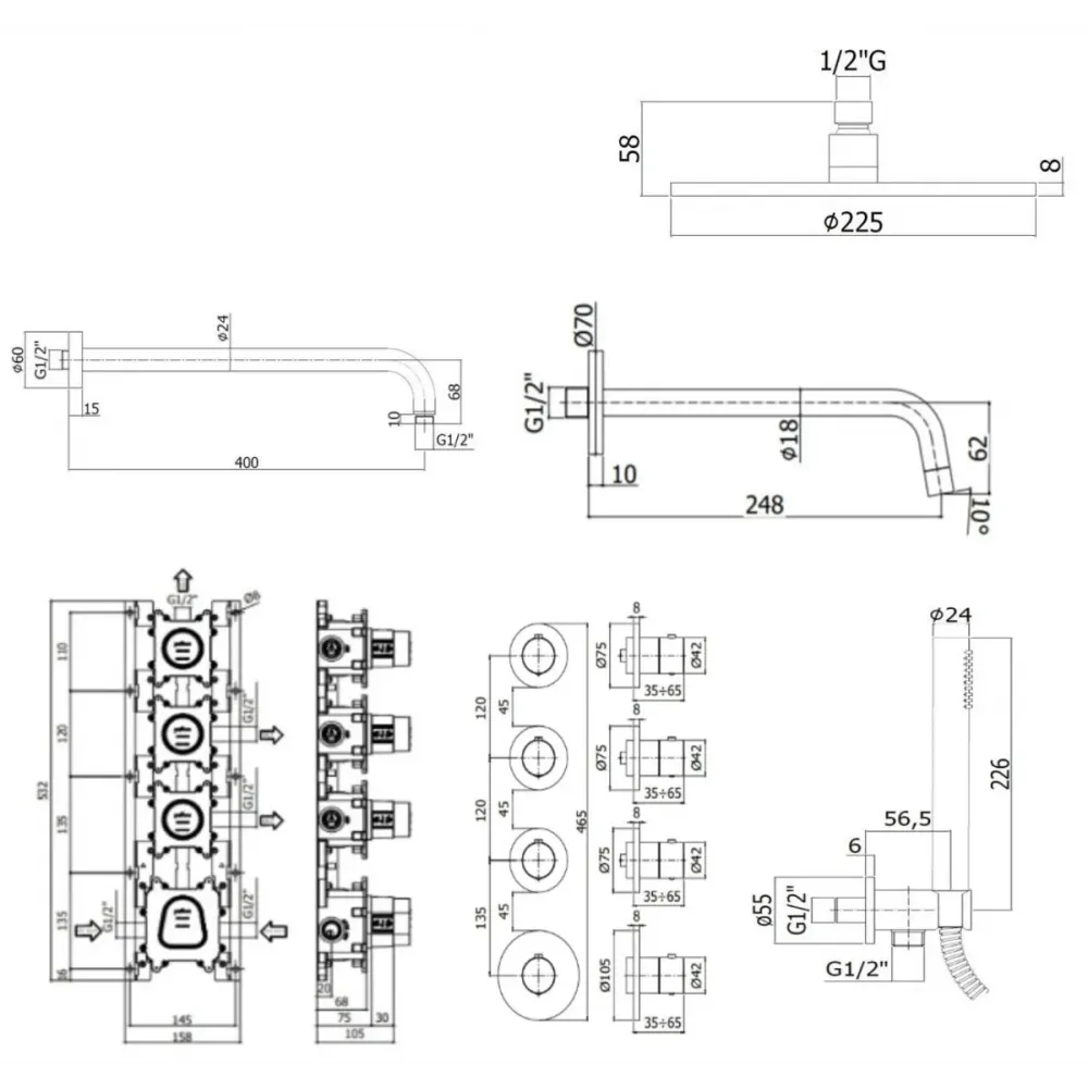 •MDE019NO Внешняя часть смесителя ТЕРМОСТАТ, для использования только с арт.MDBOX019, на 3 выхода, расположение горизонтальное или вертикальное. В го