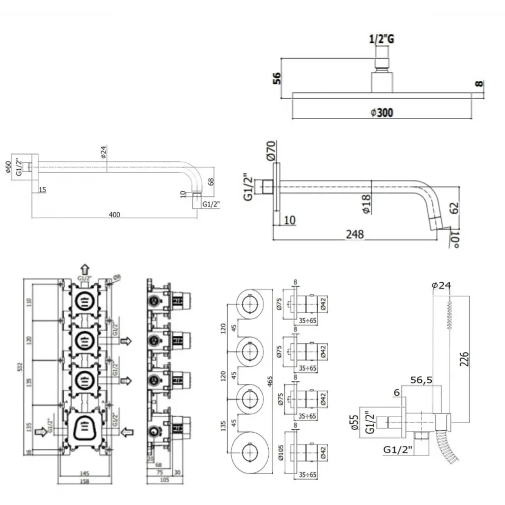 •MDE019NO Внешняя часть смесителя ТЕРМОСТАТ, для использования только с арт.MDBOX019, на 3 выхода, расположение горизонтальное или вертикальное. В го
