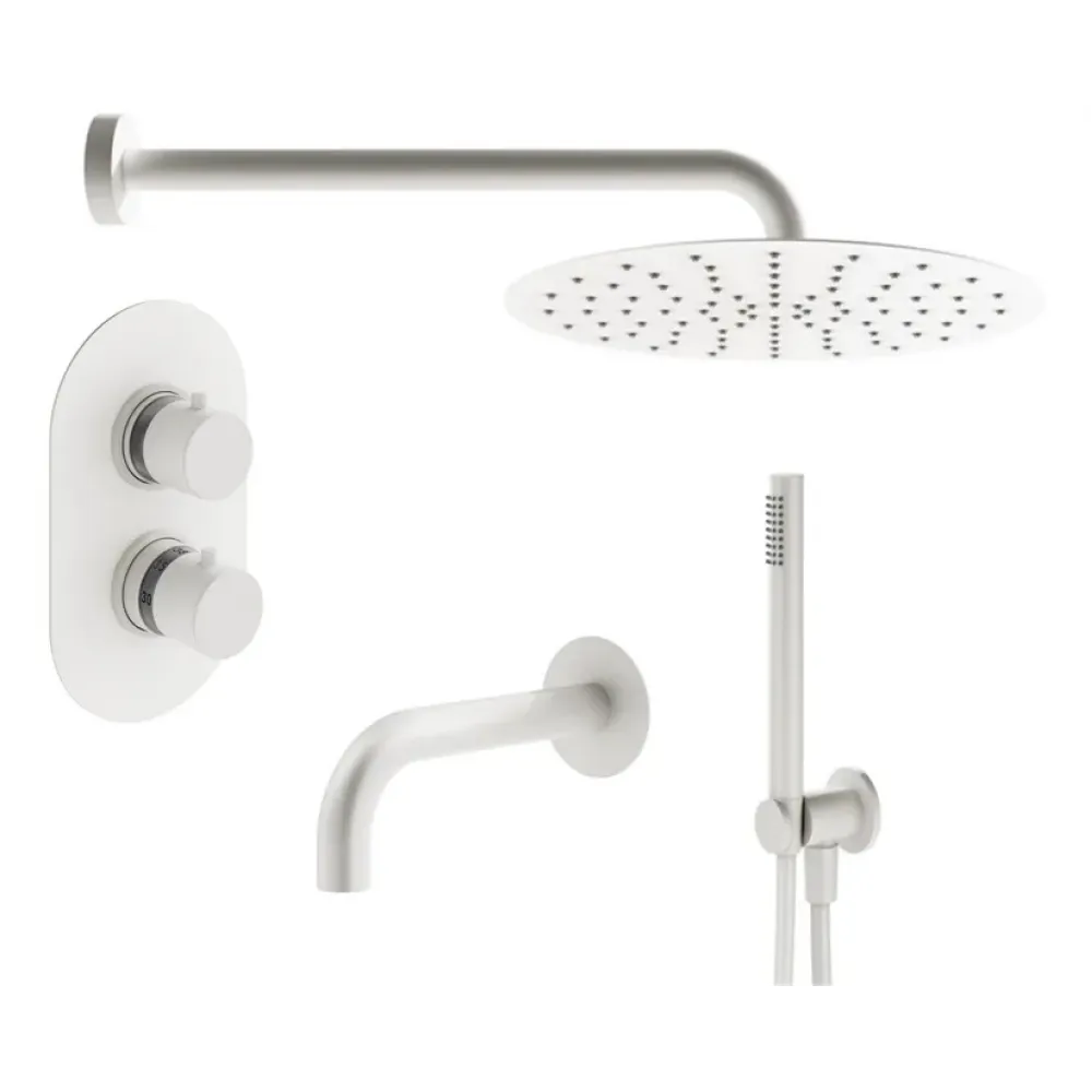 Комплект KITXOT19BO260KING для ванны с изливом 250мм, смесителем XOT5050BO термостатическим на 3 выхода, душ 300мм, IXO, белый матовый Plumberia Selection