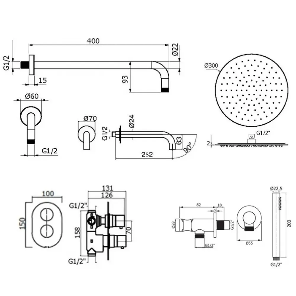 - SAT3178BO Верхний душ d. 300 из нержавеющей стали, встроенный клапан безопасности, поворотное крепление, антикальций, 2мм, белый матовый, Plumberia Selection.