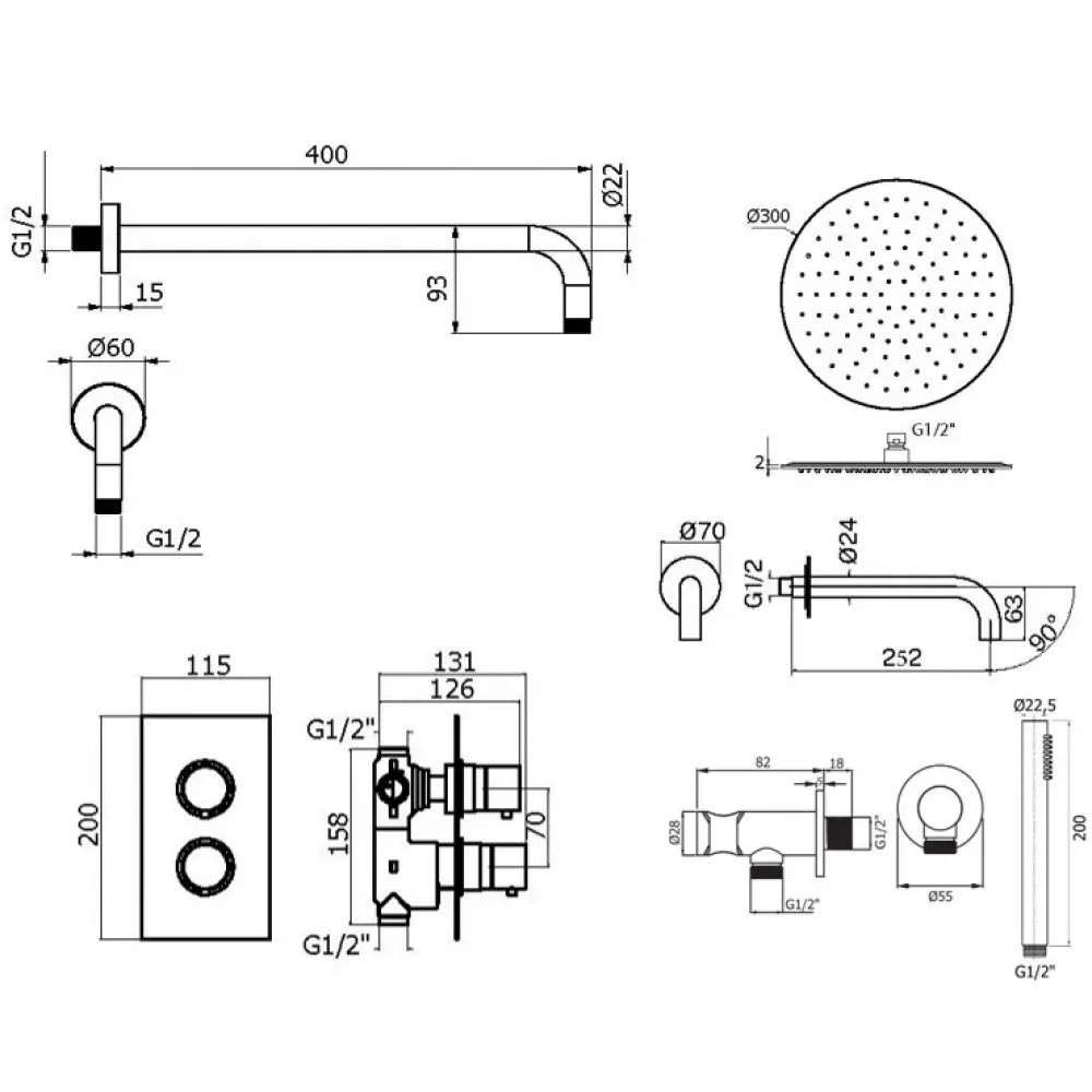 Комплект KITXOT19QBO260KING для ванны с изливом 250мм, смесителем XOT5030BO термостатическим на 3 выхода, душ 300мм, IXO, белый матовый Plumberia Selection