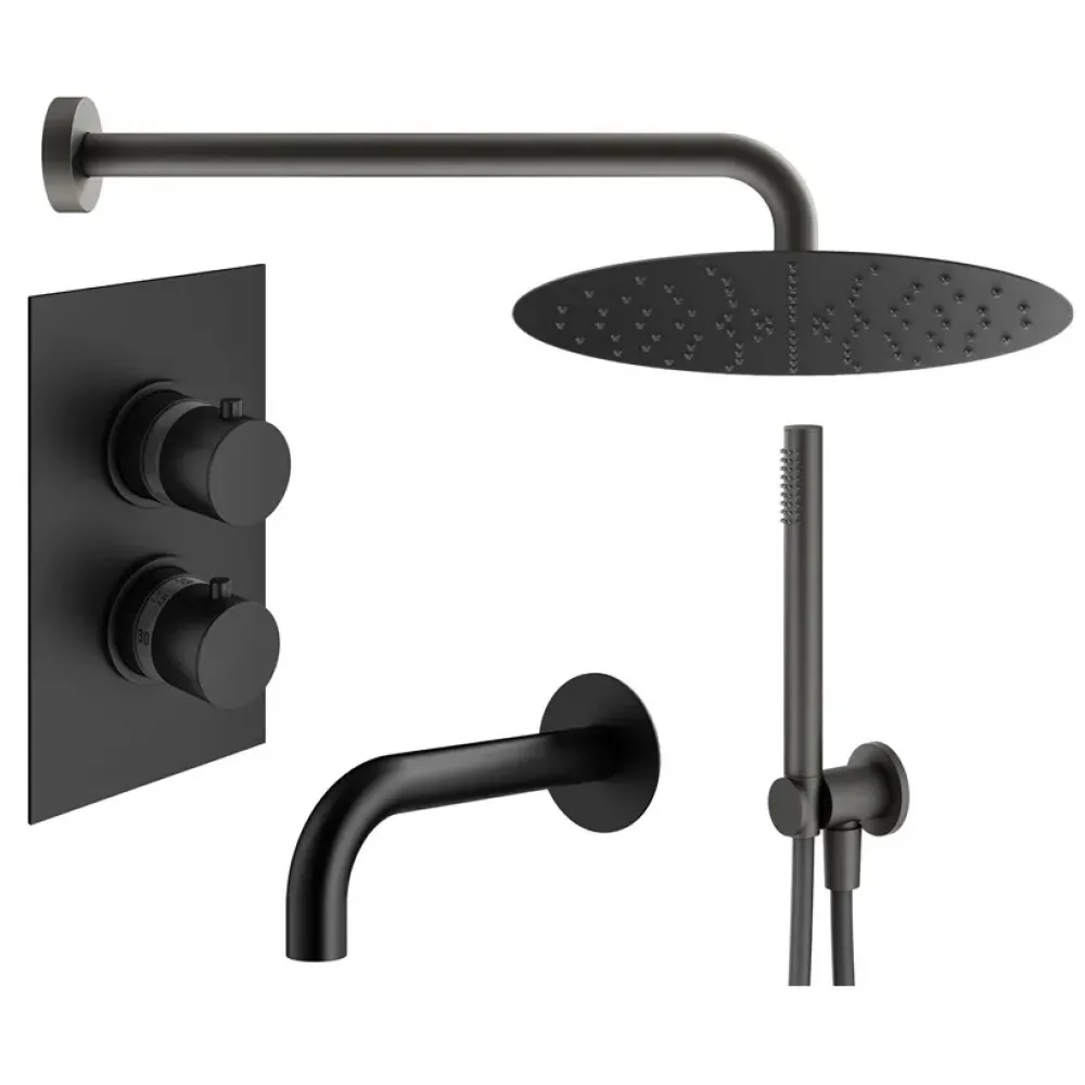 Комплект KITXOT19QNO60 для ванны с изливом 210мм, смесителем XOT5030NO термостатическим на 3 выхода, душ 250мм, IXO, черный матовый Plumberia Selection