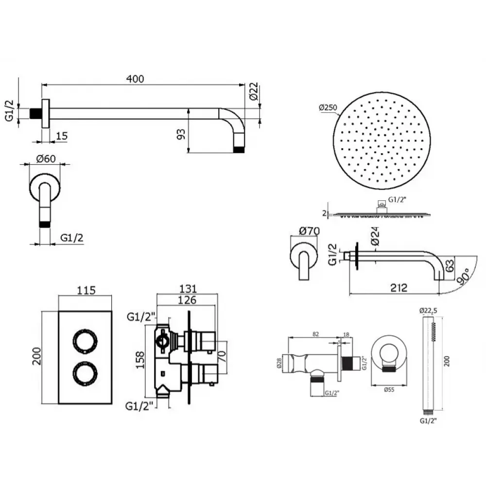 - SAT3174NO Верхний душ d. 250 из нержавеющей стали, встроенный клапан безопасности, поворотное крепление, антикальций, 2мм, черный матовый, Plumberia Selection.