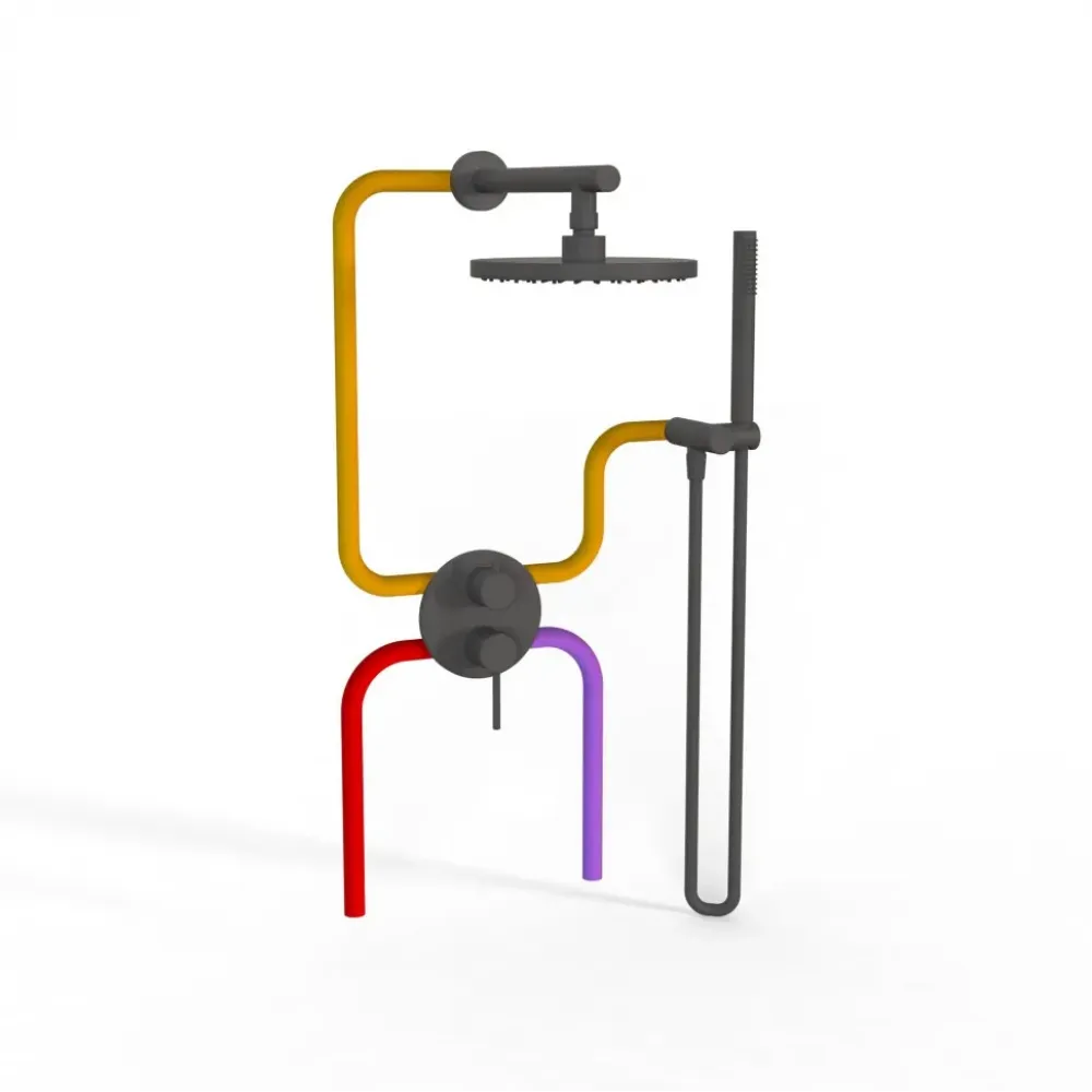 Комплект на 2 потребителя Cox PAINI, для душа, черный брашированный PVD