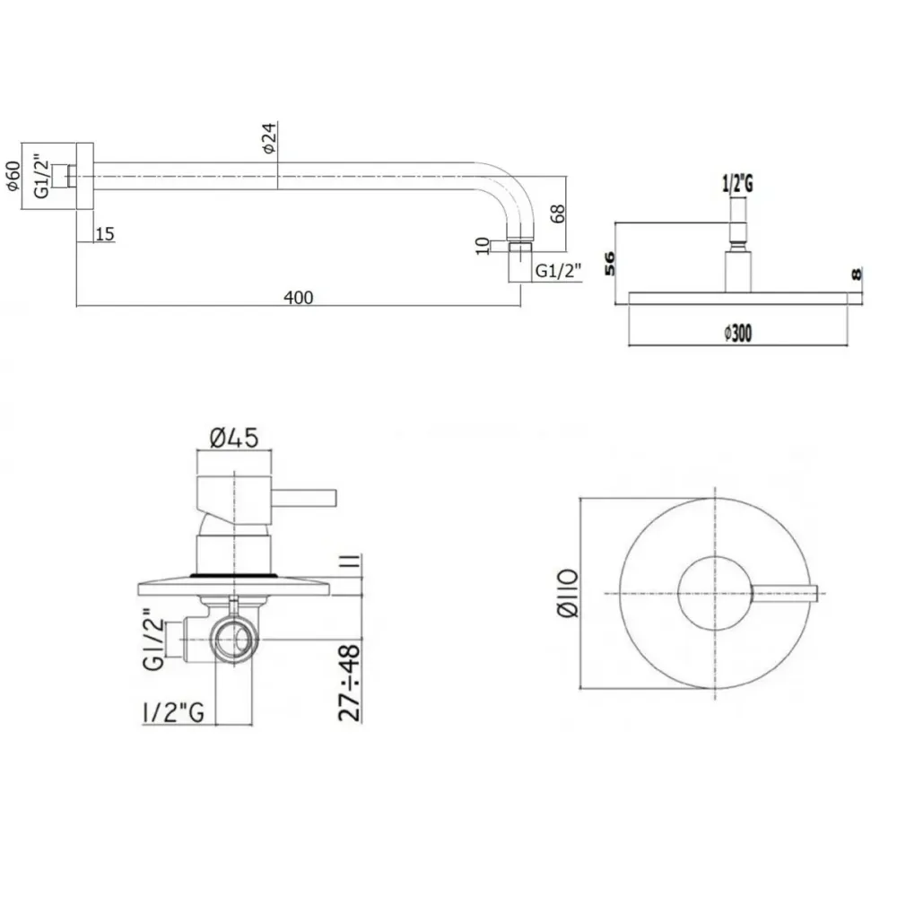 Комплект KITLIG011BOKING для душа, со смесителем LIG011BO на 1 выход, душ 300мм, LIGHT, белый матовый Paffoni