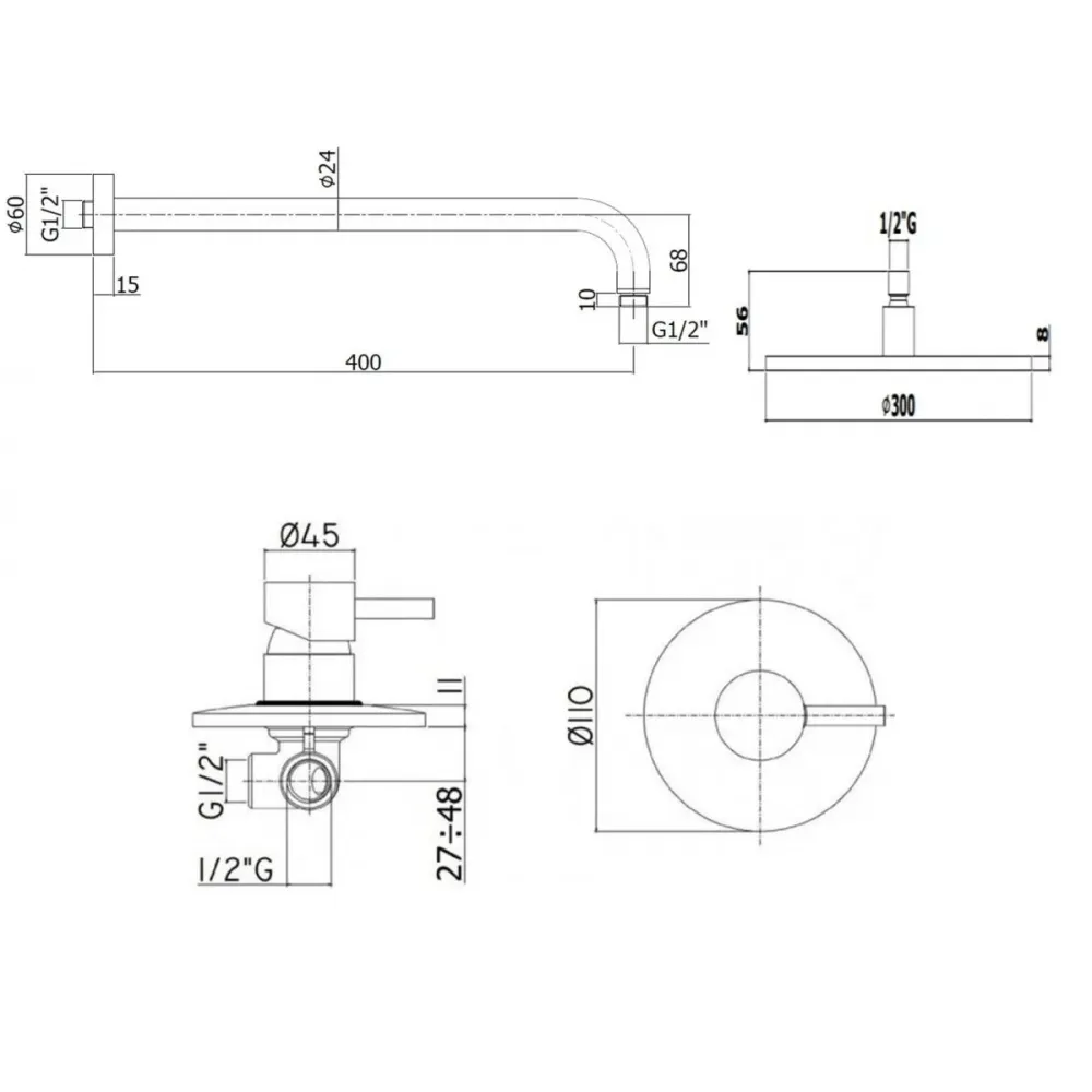 Комплект KITLIG011CRKING для душа, со смесителем LIG011CR на 1 выход, душ 300мм, LIGHT, хром Paffoni