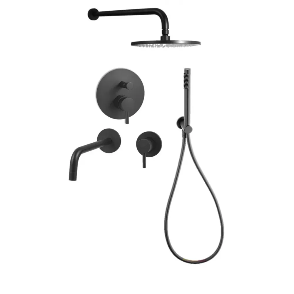 Комплект KITLIG015NO006 со встраиваемым смесителем для раковины LIG006NO70, смеситель для душа LIG015NO на 2 выхода, душ 225мм, LIGHT, черный матовый
