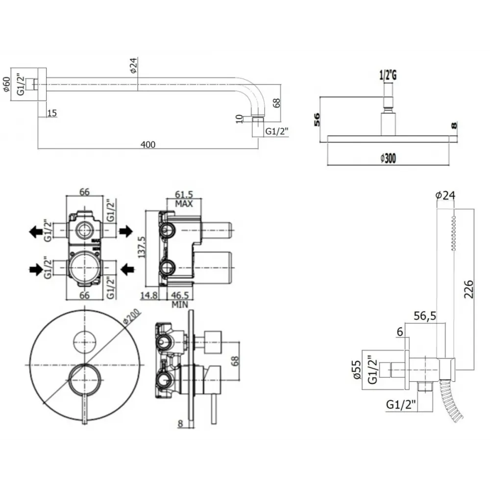 Комплект KITLIG018CRKING для душа со смесителем LIG018CR на 2 выхода, душ 300мм, LIGHT, хром Paffoni - 2 шт