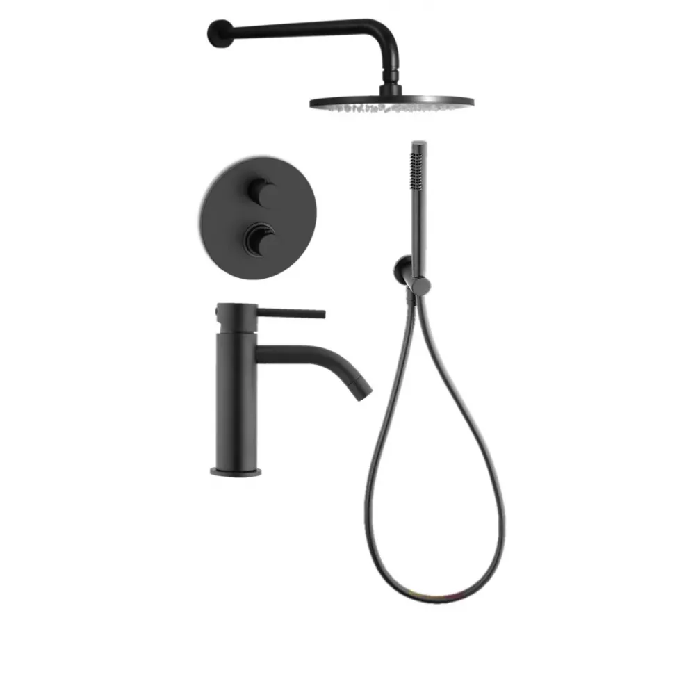 Комплект KITLIQ018NO071 со смесителем для раковины LIG071NO, смеситель для душа LIQ018NO термостатический на 2 выхода, душ 225мм, LIGHT, черный матов