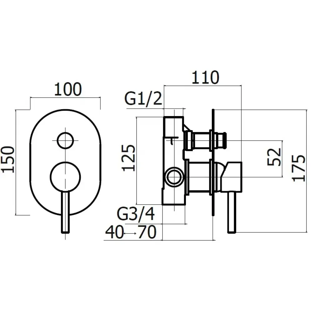 KIT1001CR Комплект встраиваемого смесителя для душа с внутренней частью, 2 выхода, накладка 100х150мм, девиатор кнопочный, хром IXO, Plumberia Selection