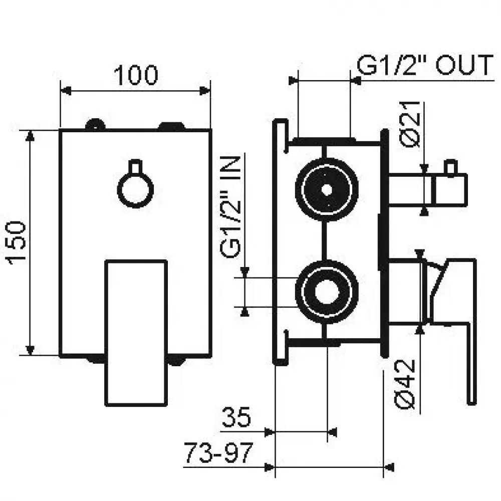 KITTG1901NO Комплект встраив. смесителя для душа с внутренней частью INT9036 на 2-3 выхода, накладка 100X150mm нержавеющая сталь, механический девиатор, черный матовый TAG, Plumberia Selection