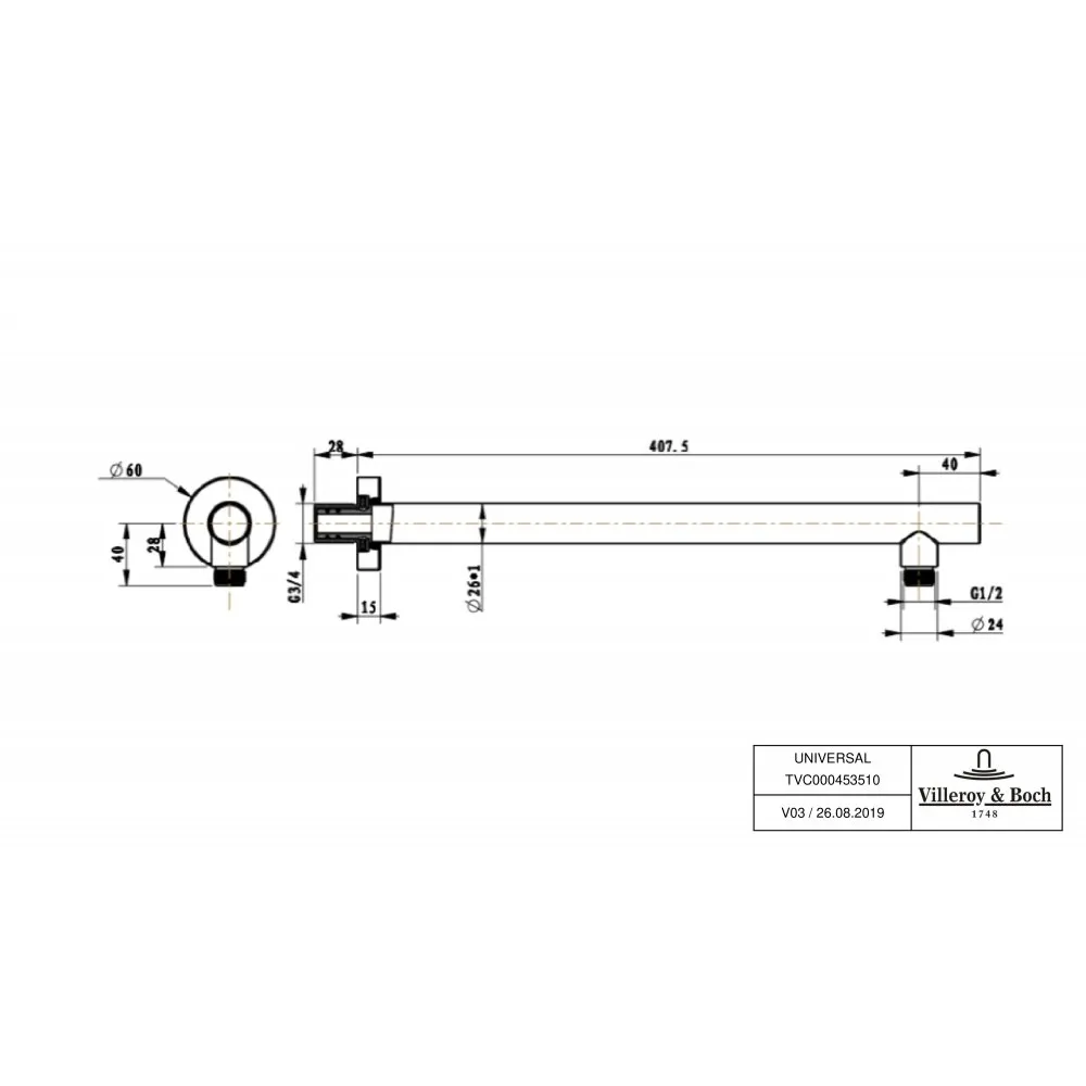 Кронштейн для настенного монтажа ливневого душа, круглый, длина 40 см.