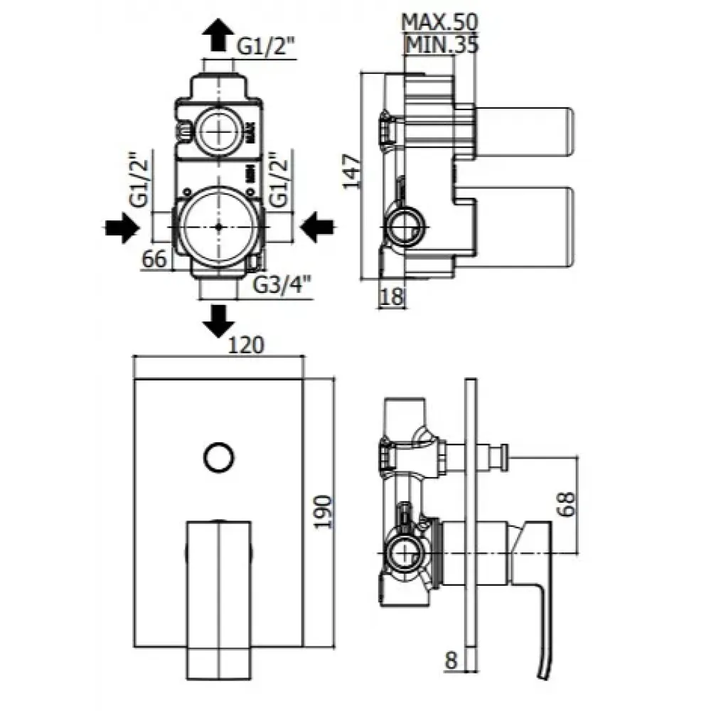 Смеситель для душа встраиваемый Paffoni Elle EL015NO/M с накладкой из металла 120х190мм, черный матовый